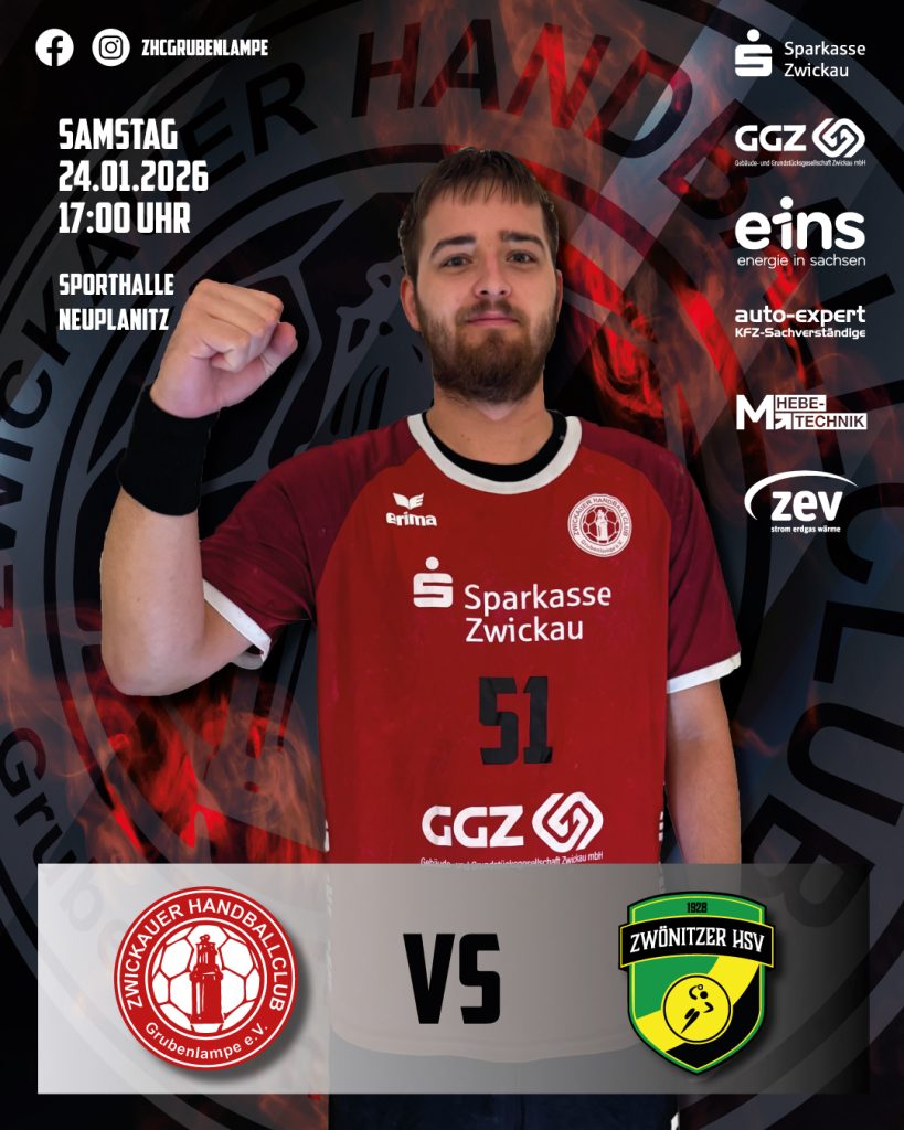 Wir empfangen den direkten Tabellennachbarn aus Zwönitz zum Derby in der Sporthalle Neuplanitz.